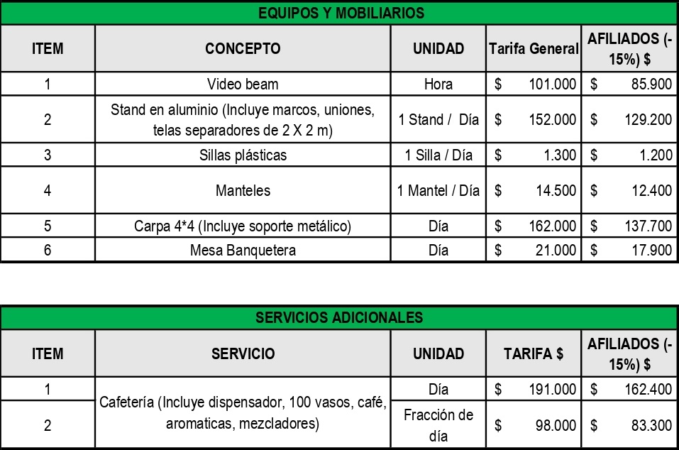 - Los Auditorios incluyen: Video beam, papelógrafo y sonido.