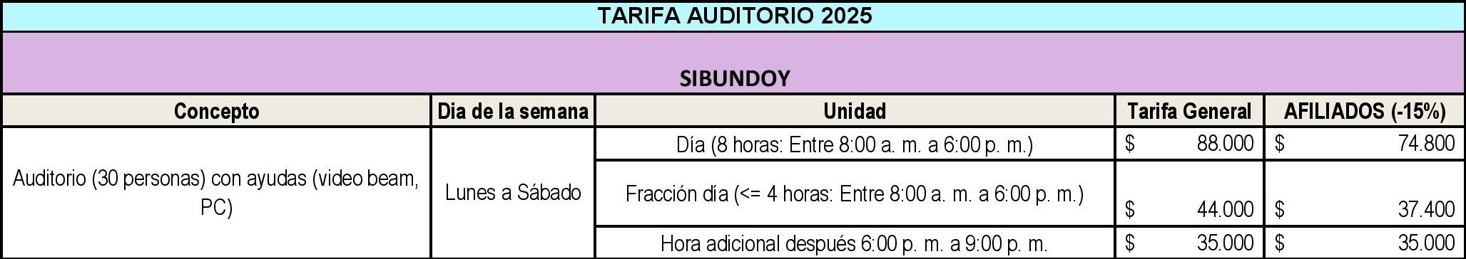 En ningún caso el alquiler de los auditorios autoriza al arrendatario ubicar publicidad promocional o informativa de su jornada en las carteleras o fachadas de la entidad, solo la de señalización del evento en los días y hora de su realización.