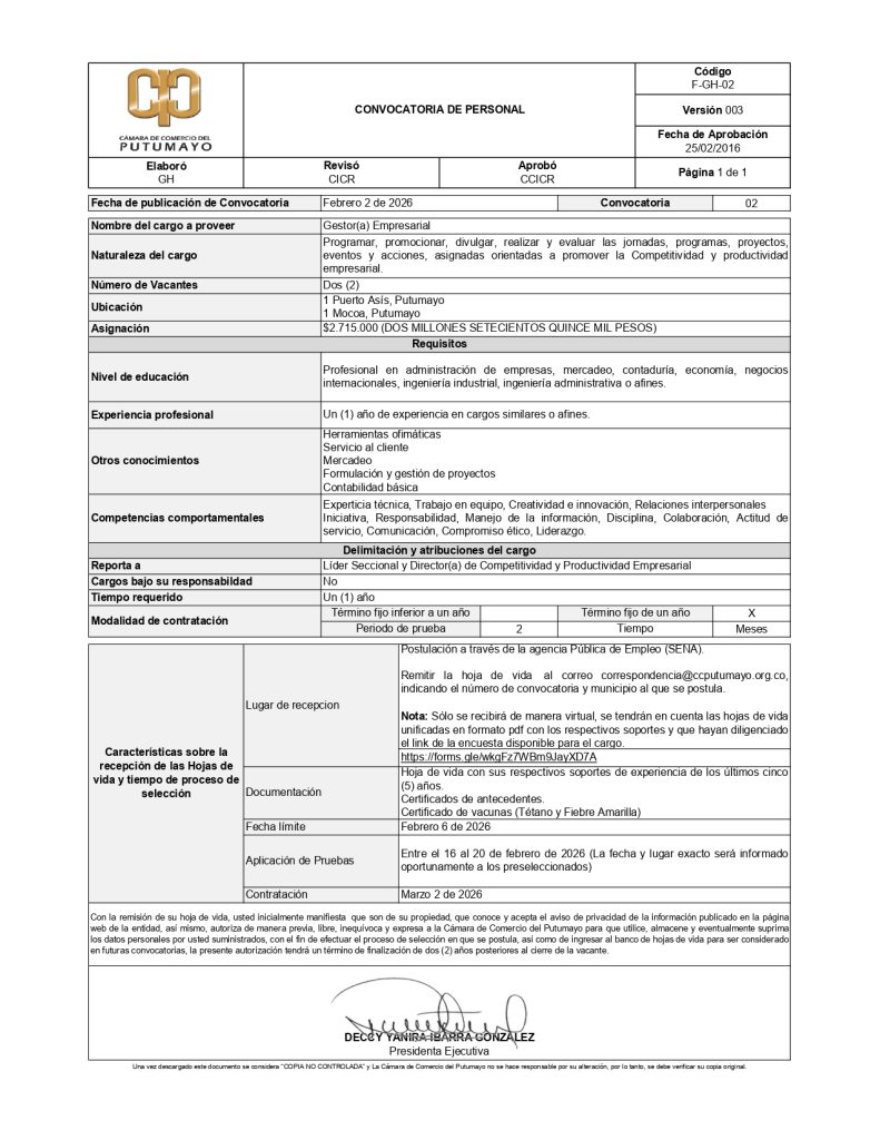Nombre del cargo a proveer: Gestor(a) Empresarial